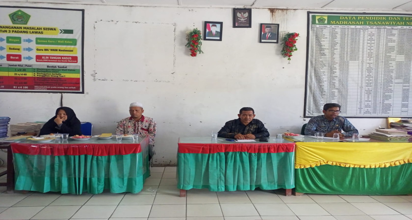 Rapat awal tahun ajaran baru dan pembagian tugas guru dan staff MTsN 3 Padang Lawas Semester Ganjil TP. 2023-2024