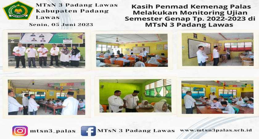 Kasih Penmad Kemenag Palas Melakukan Monitoring Ujian Semester Genap TP. 2022-2023 di MTsN 3 Padang Lawas (05/06/2023).